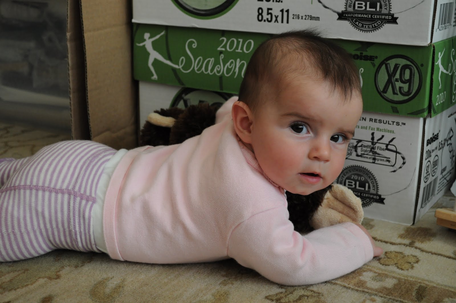 Will has hit all of the milestones that are right around the corner for M, like eating food, sitting up, and saying first words. She was watching everything he did.